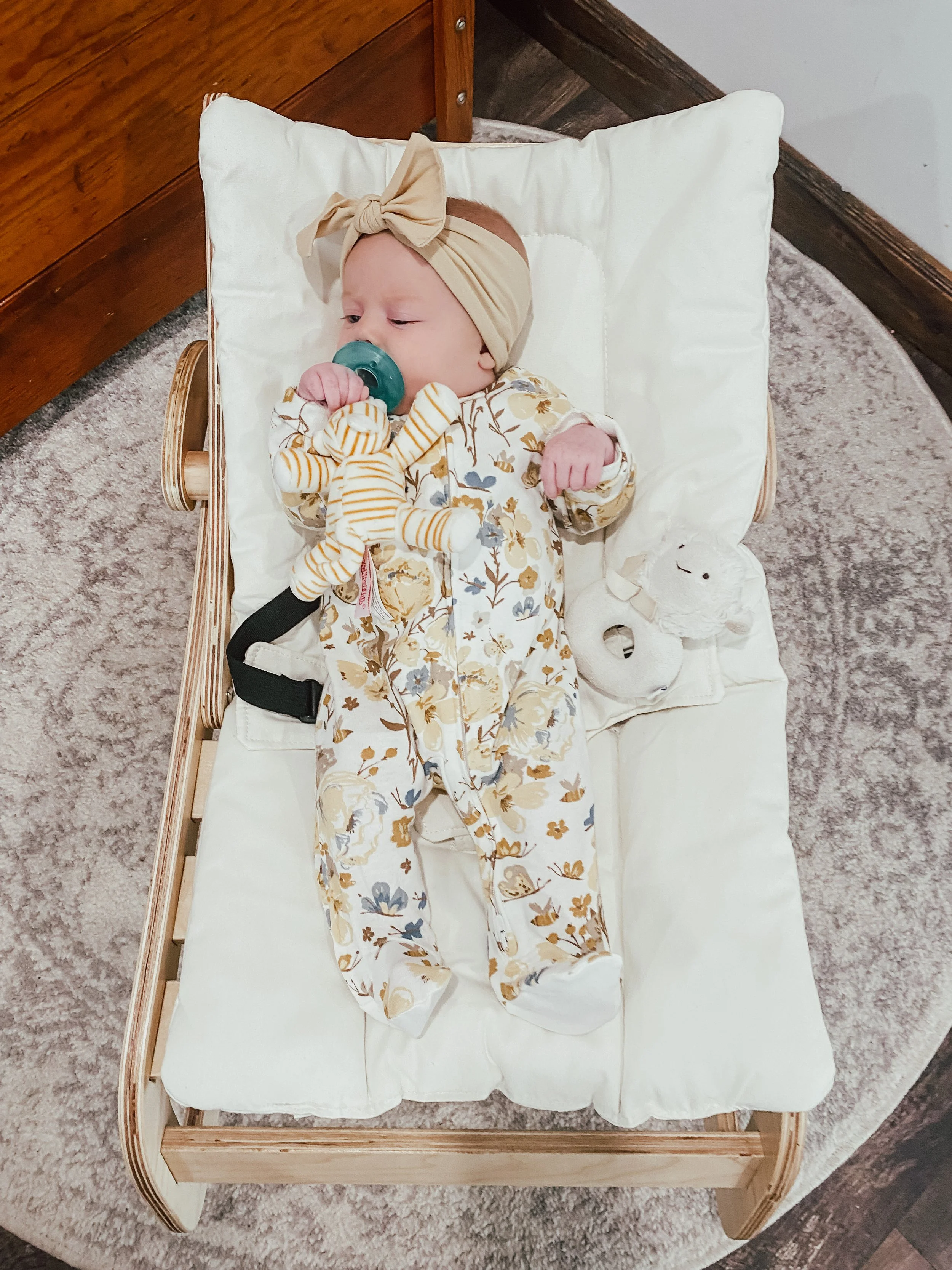 New baby, new baby things! One of my faves is this new rocker we got for Bowie. With two toddlers running around, having safe docking stations to put bebe #3 down on to are a necessity!